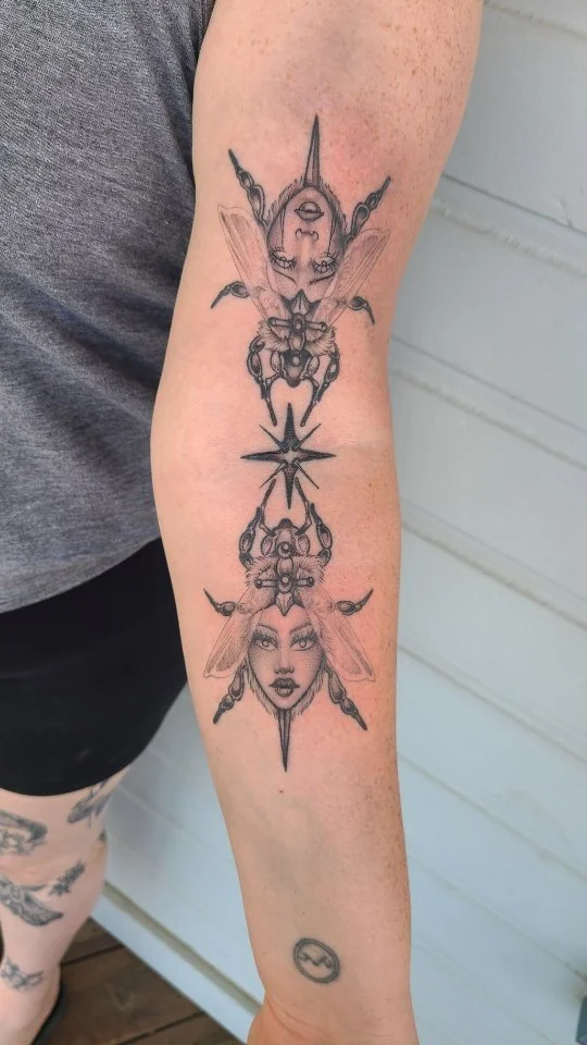 I specialize in Neo Traditional, Color Realism, and Black & Grey Realism – styles that allow me to bring bold designs, lifelike detail and rich depth to my work. I love creating tattoos that feel alive, whether it’s a vibrant color piece, a striking black and grey portrait, or a beautifully stylized Neo Traditional design.